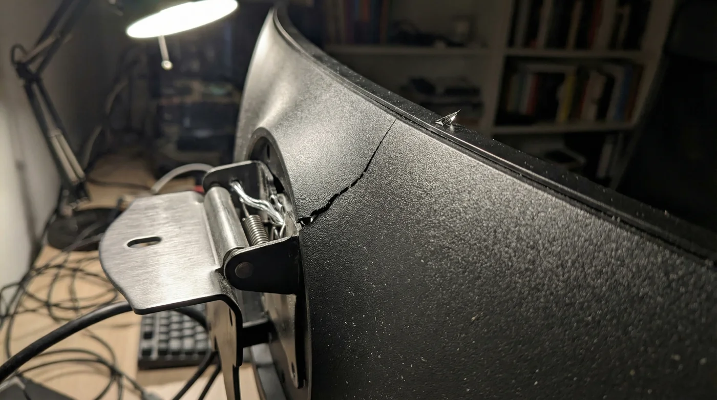 Bir yayı iki ucundan aşağı doğru bükmeye çalıştığını düşün. Duvar askısı monitörün merkezini sabit tutarak duvara yapıştırırken, kavisli kenarlar boşlukta esnemeye çalışır. Odanın içindeki sıcaklık değişimleri ile plastik kasa genleşip büzüldükçe, bu yapısal gerilim cam panelin sınırlarını zorlar ve en zayıf noktadan, genellikle iç katmanlardan patlak verir.