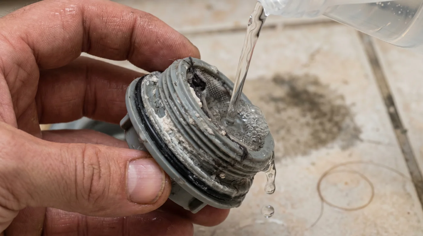 4. Kimyasal Bekleme Süresi: Asidin pompanın plastik pervanelerine ve sertleşmiş kauçuk contalarına tam olarak nüfuz etmesi için saatinizi kurun ve 15 dakika bekleyin. Kirecin eridiğini gösteren çok hafif bir çıtırtı veya köpürme sesi duyabilirsiniz.