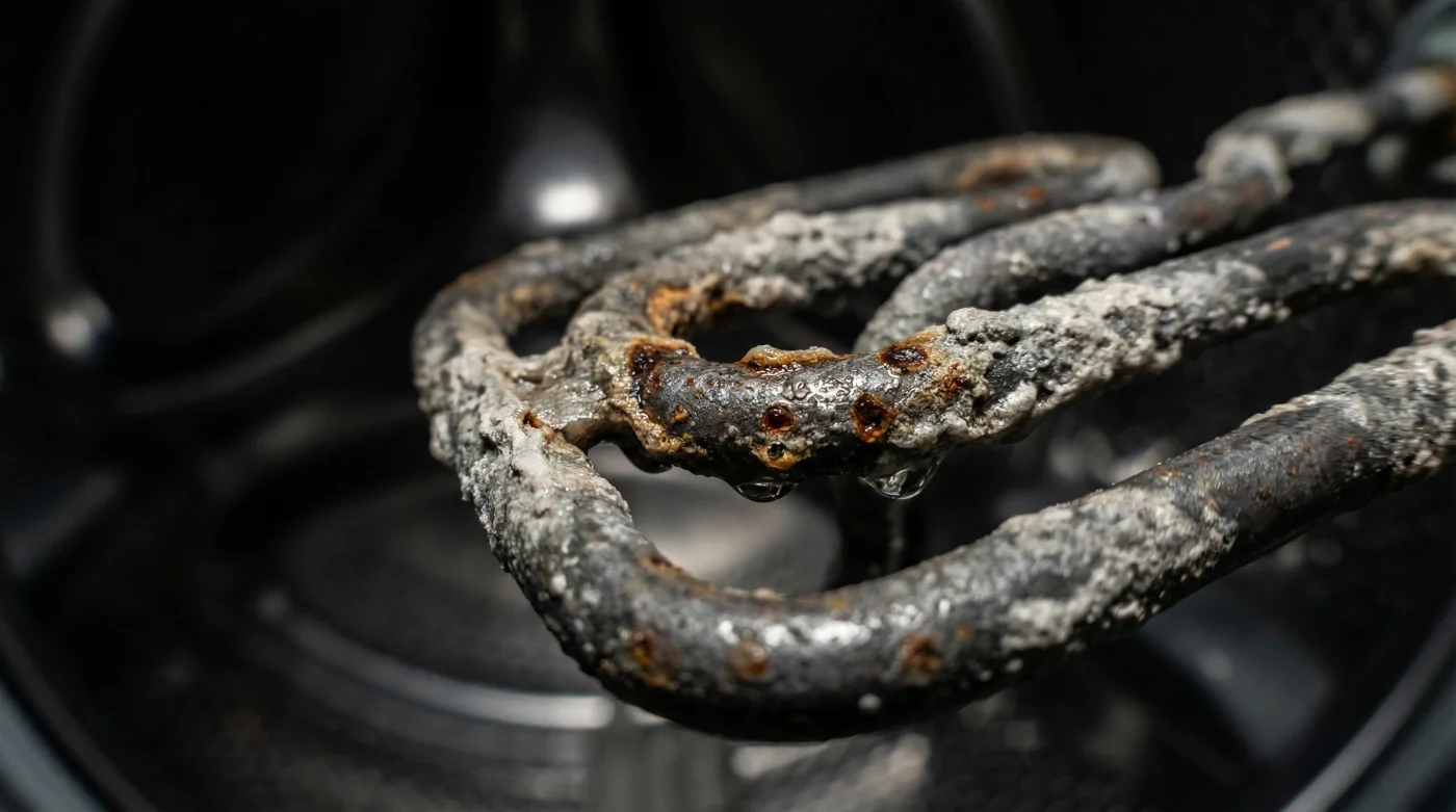 Her yıkama döngüsünden arta kalan çözülmeyen yoğun kimyasallar, makinenin rezistansının etrafına sımsıkı sarılarak adeta taşlaşmış bir korozyon tabakası yaratıyor. Su her ısınmaya çalıştıkça bu kimyasal çamur daha da fırınlanıyor, sertleşiyor. Sen makinenin düğmesine her bastığında, zavallı rezistans kendi etrafına örülen bu kimyasal kafesin içinde çırpınıyor ve enerjisini suyu ısıtmak yerine bu betonlaşmış tabakayı aşmak için harcıyor.
