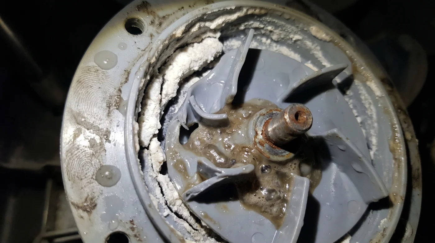 Bulaşık tabletleri, kurumuş yağları parçalamak için tasarlanmış yüksek konsantrasyonlu sodyum karbonat ve agresif enzimler içerir. Çamaşır makinesinin ana kazanı paslanmaz çeliktir, ancak alt kısımdaki o küçük tahliye pompası pervanesi, maliyeti düşürmek için genellikle standart polipropilen veya ABS plastikten üretilir. Tablet o dar ve durgun su havuzunda yavaşça çözünürken, plastik yapıyı moleküler düzeyde zayıflatır.