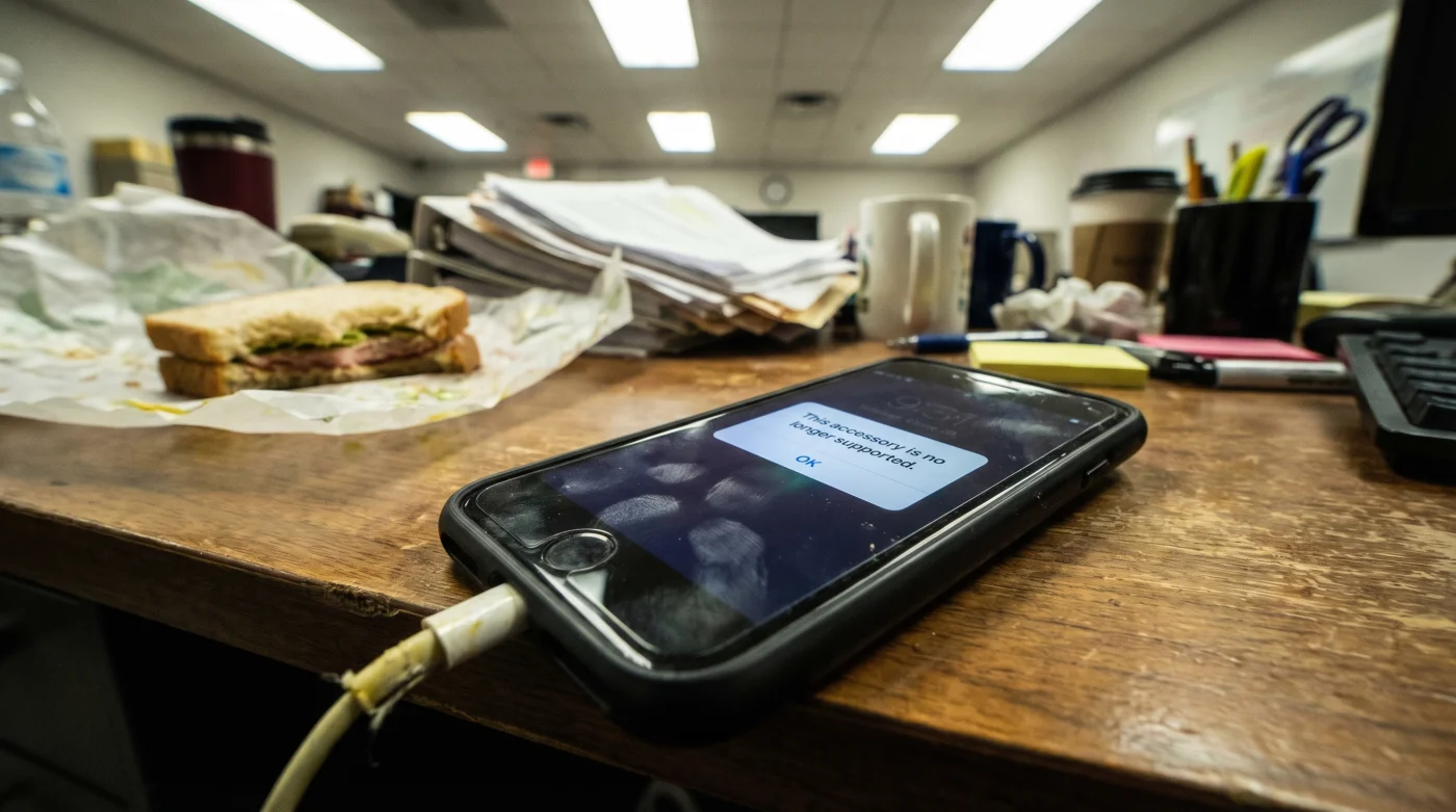 Bir an için prizin bozulduğunu düşünüyorsun. Belki de kablo o tuhaf açıda büküldüğü için temassızlık yaptı diye içinden geçiriyorsun. Gözlerini zar zor aralayıp kabloyu çıkarıp tekrar takıyorsun. Ekranda beliren o kısa, keskin bildirim metni her şeyi açıklıyor: ‘Desteklenmeyen Aksesuar.’