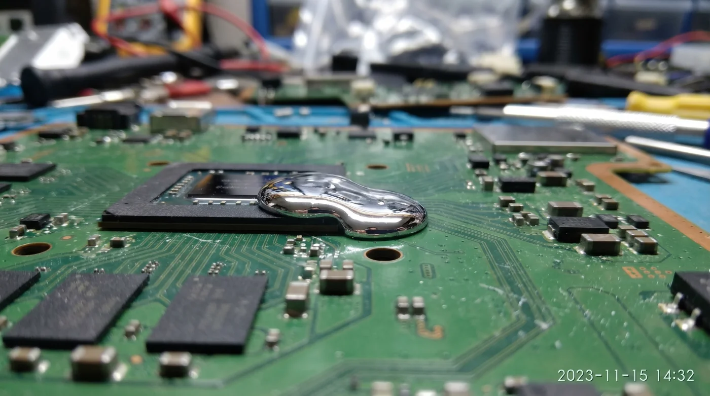 Sıvı metal, galyum ve indiyum ağırlıklı yapısıyla standart termal macunlara kıyasla ısıyı çok daha hızlı iletir. İşlemci zarı ile soğutucu blok arasına sürülen bu sıvı, süngerimsi ince bir bariyerle işlemcinin yüzeyine hapsedilmiştir. Cihaz 70-80 santigrat derece bandında, aylarca hatta yıllarca dik konumda çalıştığında, bu akışkan madde ısının da etkisiyle vizkozitesini kaybeder ve yerçekimine yenik düşerek bariyeri aşındırmaya başlar. Sonuç olarak işlemcinin üst kısmı sıvı metaldan arınıp soğutucusuz kalarak kavrulurken, yerçekimiyle aşağı süzülen iletken madde anakarttaki SMD kapasitörlere temas edip anında kısa devreye yol açar. Tıpkı sıcak bir yaz gününde eriyen dondurmanın külahın kenarından sızması gibi basit bir mekanik çöküştür.
