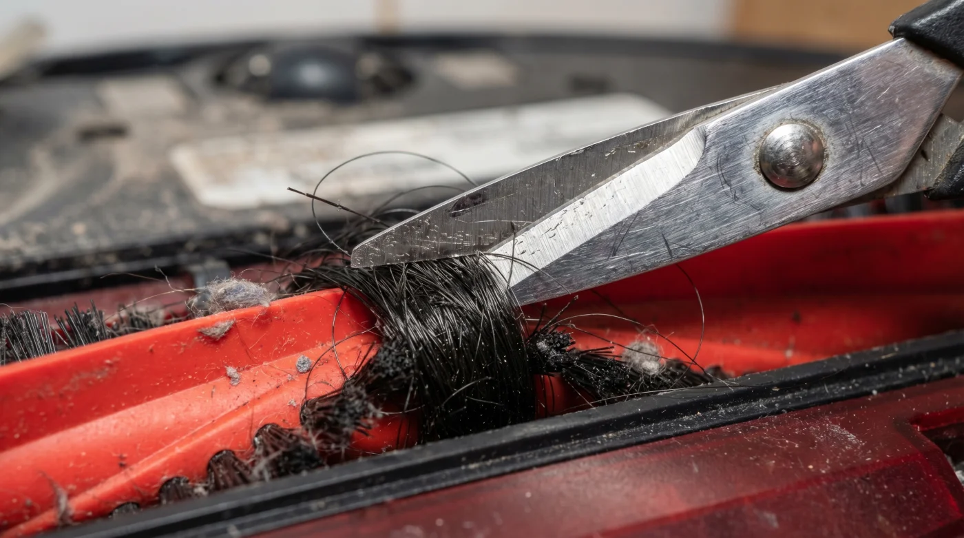 Cihazın altından gelen o boğuk, zorlanmış motor sesini duyduğunuzda iş işten geçmiş oluyor. Cihazı ters çevirdiğinizde karşılaştığınız manzara hep aynı: Kırmızı fırçanın etrafına kördüğüm olmuş siyah saçlar, evcil hayvan tüyleri ve halı iplikleri. Çoğu insan refleks olarak bu saçları parmaklarıyla koparmaya, çekiştirmeye çalışıyor. Tırnaklarınızın arasına sıkışan tozlu, yağlı saç öbekleri ve plastiğe sürtünen parmak uçlarınızın acısı cabası. Oysa o kalın kıl tabakası, cihazın dönme eksenini boğarak bataryayı sömürüyor. Cihaz halıyı fırçaladığını zannederken aslında kendi üzerinde dönen devasa bir saç yumağını sürüklüyor. Fırçanın üzerinde gizlenmiş ince bir kılavuz çizgisi var ve tek ihtiyacınız olan, soğuk bir çelik makasın o ince kanaldan tek hamlede kayıp gitmesi.